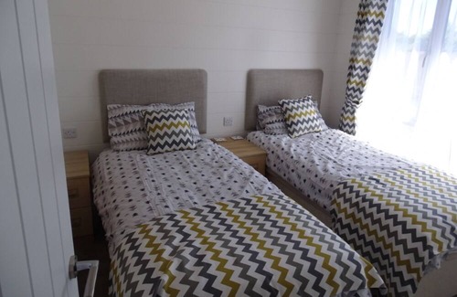 Three bedroom lodge, with one double bedroom with large en-suite shower room and two twin bedrooms. A separate bathroom with bath/shower. The open plan kitchen/dining room is fully equipped with a dishwasher, washing machine/tumble dryer, fridge freezer, microwave, electric oven and hob. Full central heating. The lounge has a 40" television and a wall mounted fire. Outside Decking and car parking beside lodge. Colour schemes may vary slightly between lodges.