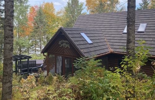 Miles of snowmobile trails! A long private half-pipe sledding hill on the property that shoots out onto the frozen lake! Garage and heated shop available for your sleds and gear! Large open floor plan with huge wall of windows overlooking private Hunter Lake. This lodge has four bedrooms and 3 bathrooms. Sleeping for 11 adults or 12 with children. In addition, there are two *Cordaroy bean bag beds for extra sleeping. Many thoughtful touches in this beautiful lake front forest lodge. Four adult and one child sized kayak available for your use. Fire pit. Trails. Huge deck. Two screened porches, including one that can be warmed up for dining while surrounded by snow. Green space for games in summer. Snowmobile and ATV trails within 3 miles and 9 hole executive golf course.