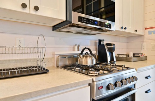 Homestead has a luxury sued simplicity forest views, sleek hardware. The tiny home cabin has a queen bed, loft with two twin beds, a bath, eat-in gourmet kitchen with top tier appliances. it features; quartz countertops, hardwood floors throughout, cathedral ceilings with two story windows, a itting area with overstuffed custom furniture and luxury fixtures, fireplace, washer dryer, central air conditioning + heat with wonderful forest views with functional fire pit.