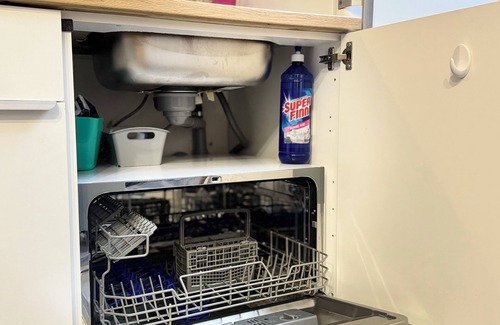 The kitchen is equipped with a stovetop, a refrigerator, and a dishwasher, as well as a coffee maker, an electric kettle, and a microwave. Connect to the WiFi, or get cozy in front of the TV. Bathroom amenities include a hair dryer, a bidet, and towels. And you won't have to pack extra clothes, because you'll have a washer and dryer, too. Other amenities at this 1-bedroom, 1-bathroom rental include bed sheets, an ironing board, and heating.