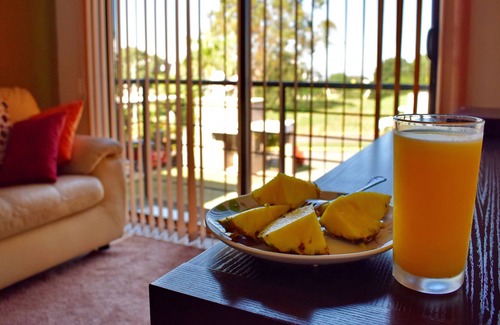 Lovely, Affordable & In the Perfect Location: Capital & Airport. Inside the condo, you will find two bedrooms, queen & full double. Enjoy the main suite with the good queen bed, large closet, black out & mini balcony with 42" HDTV, just bring your roku, apple or firetv stick, and you can also enjoy the cozy full double bed room with closet. You can have optional air conditioning in each bedroom (just ask to include it in the final quote). Hungry? Use the equipped kitchen & dining area with bar level table for meal prep or just snacks and drinks. The table is great for getting some online work done too! The cozy living area comes with a 42' HD LED TV, Roku & Netflix while you can enjoy the living area sofa.