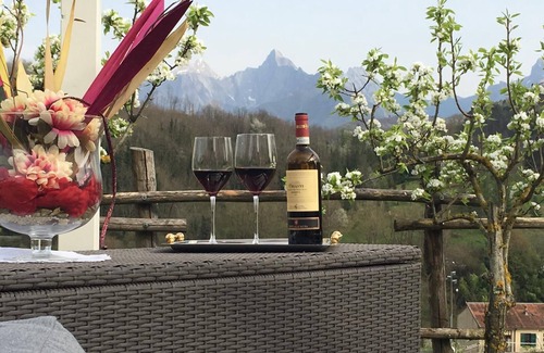We are 2 families visiting from Canada. Total 9 people. We were very pleased with our choice to stay here. Check in was efficient. Francesco was available via email, text or just upstairs if you needed anything. Home was very clean and pictures are very accurate. Francesco provided restaurant and vineyard suggestions as well as emailed us a multipage things to do in the area when I inquired. He even texted us about a village party and secured us tickets (a total highlight of our stay in Italy). This area of Italy is beautiful. Soliera is a wonderful village with spectacular views. The views from the property are stunning. We found ourselves changing travel plans, as we wanted to just relax in the garden or by the pool enjoy the mountain view. The home is quite large with plenty of space for our party of 9. Dining table seated at least 10. Outdoor dining table also seated all of us. Pool was fabulous with a shaded gazebo and sunny loungers. Pool bathroom was also very convenient. Apple, pear and olive trees in the garden, as well as lavender and lots of flowers. Secure parking for 2 cars. Thank you so much for our stay. We highly recommend this home.