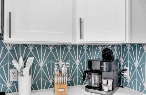 The open concept kitchen, dining, and living room allows this 1 bedroom, 1 bathroom to feel like so much more and provides plenty of space. The living room offers a gorgeous Crate & Barrel queen sleeper sofa that is a step above just any average sleeper sofa as it offers a comfortable Cool Gel Memory Foam Mattress, guests will also enjoy a large 65 inch Samsung Crystal UHD 4K Smart Television that allows guests to access all of your favorite streaming services such as Netflix, Hulu, HBO, Disney+, Prime Video and more.