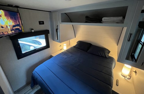 Brand new RV located in Payson, Utah where you will enjoy nature in the city. Included in the stay is a picnic area, grill, grassy area, and fire pit to enjoy at night. Screen and projector available upon request for movie night after dark. Perfect for a weekend getaway, staycation, time together with family and loved ones.