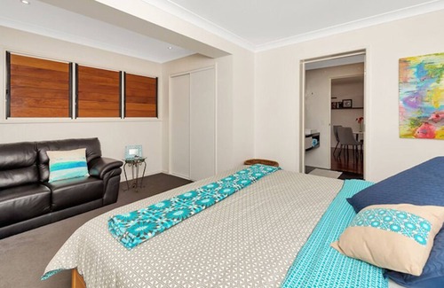 The perfect spot to relax or use as a base to explore the best of the Gold Coast. Your private suite overlooks the sparkling swimming pool where you can relax under the umbrella. Ideally located on the northern Gold Coast. Walking distance to Paradise Point waterfront village where there are numerous restaurants, cafes, beach, parkland with playgrounds. Short drive to theme parks, walking distance to public transport.