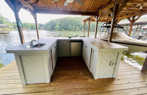 Come stay and enjoy relaxing at this lake front retreat! Bring your kayaks, paddle boards, fishing poles and golf clubs! Sip your morning coffee on the dock while looking across at the uninhabited Goat Island. You will see fish jump and other wildlife near the water. Take a dip in the lake by day and fish off the dock by night. Your days will be so full of activities, that you will sleep soundly in our comfortable beds, appointed with memory foam mattress toppers and silky smooth sheets.