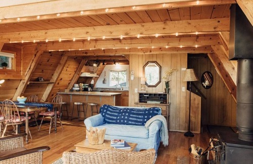 This is your dreamy A Frame cabin escapenestled in four wooded acres overlooking Shasta Lake. Master loft and large front deck look out over the valley with breathtaking views of mountain peaks, granite cliffs and Hirz Bay. Located between 3 beautiful National Parks - Lassen Volcanic, Redwood, and Crater Lake. We welcome you to experience cabin life and the wild beauty all around. Larger group? Check out our other listing, the 'Tawny Owl Cottage' ideally located next to the Treehouse.