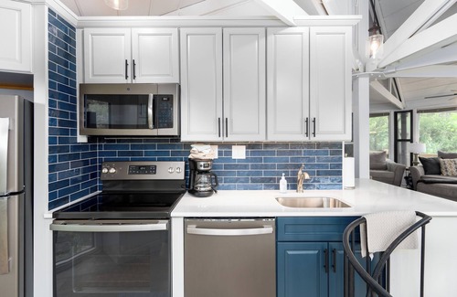 This is a lake-front home that is managed, cleaned, and maintained by its owners. We are constantly upgrading this house and keeping it fresh. New basement bathroom installed January, 2025. New kitchen cabinets, master and main bathroom, and interior paint Spring, 2023. New window and sliding door (Nov, 2021) that now gives a walk-out option from the basement bedroom onto a new deck. New Flooring, new appliances, new fixtures, new furniture, new windows and window coverings (Nov, 2020). On the water, octagon-shaped Treetop Village Cottage conveniently located on Horseshoe Bend. Unique architecture with rough hewn interior finishes and exposed beams and 180 degree views of the 13 mile marker cove. Close to Lodge of Four Seasons, night life, shopping, winery, marinas, and restaurants. The Robert Trent Jones golf course, The Cove, is steps away. Sleeps 8 with the sleeper sofa in the living room. Outdoor decks provide serenity under giant oaks with a great view of the main channel. The cottage is steps away from 1 of 3 outdoor pools, boat slips, and fishing dock. Other Treetop Village amenities include free access to the new Village of Four Seasons Aquatic Center with indoor and outdoor pools (1/4 mile away), 2 outdoor tennis courts, recreation dock, and a basketball/volleyball/pickleball court. New HVAC installed March, 2019. New front door deck built in April, 2019. New downstairs deck built in March, 2020. Attending a conference or event at The Lodge of Four Seasons? This is a great alternative to staying in the hotel; very quiet and only minutes away.