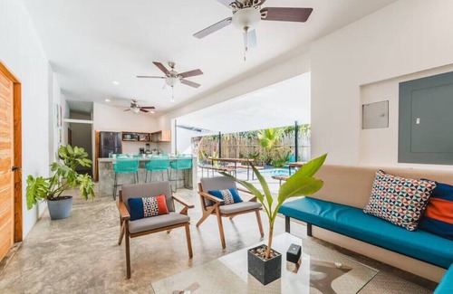 Welcome to Casa Congo, your private jungle retreat just a short walk from Manzanillo Beach. Wake up to howler monkeys as sunlight filters through the trees. Enjoy fresh coffee in the open-air kitchen, then bike to the beach. Explore tide pools or relax under a palm while the kids play. Back at the villa, rinse off, cool down in the pool, and unwind in a hammock. End the day with a BBQ, a welcome drink, and the jungle’s peaceful sounds.