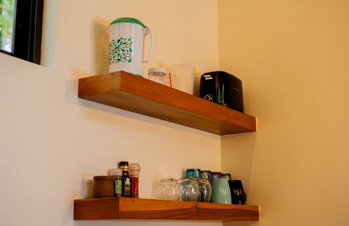 At Brahman Bungalows careful consideration has been made to ensure we offer all the amenities necessary for a comfortable stay deep in the tropics. This modern bungalow features one bedroom with a comfortable queen size bed. The pool at the center of our property offers a tranquil oasis for relaxation and leisure. Air conditioning throughout ensures a cool and pleasant retreat after a day in the sun. Stay connected and share your stunning Costa Rican experiences with our reliable wifi service with UPS backup. 100% locally crafted furnishings add warmth and comfort to every room. Our fully equipped kitchens await the culinary enthusiasts, making meal preparation a breeze with all the essentials at your fingertips. We also offer a communal outdoor kitchen and BBQ area, perfect for bonding over food and drink with fellow travelers. Leave the worry of laundry behind with our convenient laundry service keeping your wardrobe fresh throughout your stay.