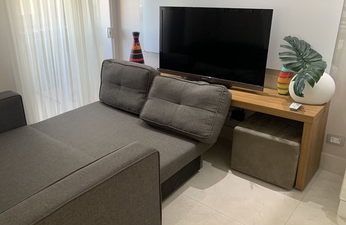 Close to the sea, this family-friendly apartment brings it all within reach. Jump into your car and make short work of the 17-minute drive to Caioba Beach or the 22-minute drive to Mansa Beach (and enjoy the property's convenient covered onsite parking in the meantime).