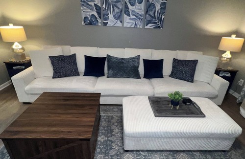 You'll feel comfy as soon as you enter into this recently updated home! Its convenient location just a few minutes away from both the lake and town, huge oversized driveway to fit your vehicles and boat, along with the large front porch are just a few things that sets this special place apart from others. It has 3 bedrooms, 2 full baths, a large open living area, lake-themed decor, wide hallway, and an extra room that can be used for relaxing, working, exercising, or entertaining guests. Super close to restaurants, gas stations and of course, KY Lake! Everything from bedding to appliances to furniture and even the decor in this place is new! BEDROOMS: 1 King size bed, 2 Queen size beds. New soft bedding & pillows, curtains, remote controlled lighting and faux wood blinds for added privacy or brightness. Fresh new carpets in Spring 2025 in each. Each has useable closets and bedroom furniture for your clothes. BATHROOMS: Both are recently updated, 1 has a bath & shower, the other is shower only. Soft absorbent towels and some essential toiletries are provided. LIVING ROOM: large oversized couch w/ottoman & oversized chair w/ ottoman, side tables & lamps, plenty of pillows and blankets, TV with cable and internet, coat closet & key rack. Functional electronic fireplace & adjustable remote lighting for ceiling fan and wall sconces. Some games are located in the coat closet. LAUNDRY: New Samsung washer & dryer if you choose to do laundry during your stay. Some detergent is provided. KITCHEN & DINING: New Samsung appliances. Cabinets stocked with plenty of plates and cups and utensils, soap, cooking/baking essentials, paper towels, extra trash bags, pantry for your snacks, coffee machine & pods, remote controlled adjustable light with fan, and seating for 4. Extra dining seating for 4 more is available also. OUTSIDE: extra large paved parking space for you and your guests, full length front porch with plenty of seating. Backyard and side yard area to play in. There are a few non-steep steps going into the home and those are the only stairs (no upstairs inside). I really think you'll love this place!