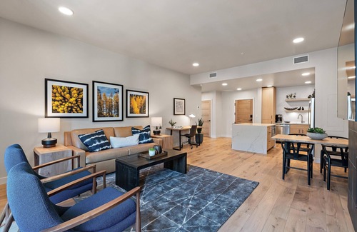 Be one of the first to enjoy the ambiance of staying in this stunning one-bedroom condo with 1 bathroom. It is located on the 3rd floor of the Megeve building with a Juliet balcony that overlooks the Village Plaza. It’s located in the Village Plaza next to Clearwater Coffee, the Village Market, and the Reserve fine dining. This amazing unit features nearly 800 square feet of living space. The new Mountain-Modern design will not disappoint, featuring an open floor plan with white oak floors and a gas fireplace. The cozy Master Bedroom has a King-sized bed, and the Living Room has a Queen sleeper sofa. This lovely retreat includes a fully equipped kitchen with stainless appliances, quartz counters, and a large center island. Guests will enjoy free Wi-Fi and cable TV plus use of the temperature-controlled underground parking garage. The location is ideal! You are located only a few short steps away from dining, shopping, and the base of the ski hill.