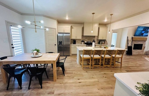 Discover our stylish new 3-bed, 2-bath home with an open kitchen, living, and dining area in a prime Lubbock location. Close to Tech, Covenant Hospital, and shopping, it's nestled in an upscale family neighborhood. Enjoy a king master suite, a roomy queen in 2nd and 3rd bedrooms, plus a queen sofa sleeper in the living room. Your perfect stay awaits!