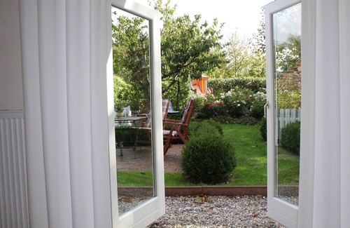 The "Rosenkate" is a lovingly renovated traditional thatched cottage in the middle of an idyllic rose garden in a quiet village location. In the guest house (Non smoking) two apartments are offered. The garden includes a garden house with sauna (20, - Euro for 3 hours) and indoor barbecue. Sun loungers and a seat at the garden house are also available, both apartments have their own terrace. A special feature is the biological swimming pond (without chemical additives), in which one can refresh after the sauna session or a sunbath. The swimming pond use is at your own risk. New is the heated bath tub.