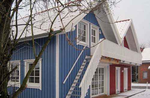 Ferienwohnung Larsson is housed in a cozy, Swedish-style wooden house built in 2014. It has an open plan living and dining area as well as a bedroom. Facilities include a fitted kitchen, TV, a terrace with garden chairs and barbecue. The house is located in a quiet cottage area. A bathing lake and a recreation area are nearby. Also the golf course and several tennis courts are easy and fast to reach.