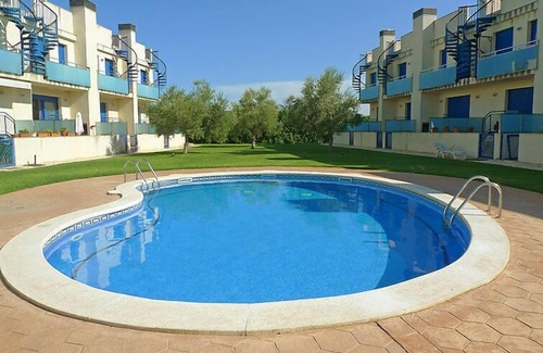 Minini: Modern, cosy, comfortable apartment block "Minini", built in 2005. Outside the resort, 500 m from the centre of L'Ampolla, in a sunny position, 800 m from the sea, 1.5 km from the beach. For shared use: beautiful, well-kept garden (fenced) with lawn, swimming pool kidney-shaped (9 x 6 m, depth 80 - 160 cm, seasonal availability: 01.Jun. - 30.Sep.) with internal staircase. Outdoor shower. Private: patio (15 m2), garden furniture, barbecue, roofed, parking space n 7. Supermarket 700 m, restaurant 800 m, bus stop 11 km, railway station 500 m, sandy beach 1.5 km, swimming bay 800 m. Nearby attractions: Parque Natural del Ebro 5 km, parque Portaventura 65 km, Pitch & Putt 2 km. National road N-340 nearby.