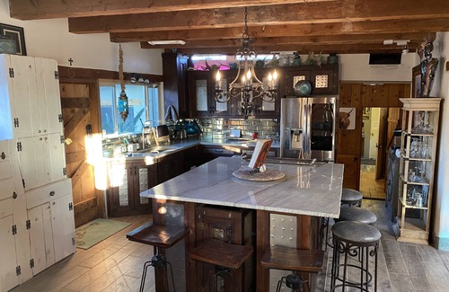 2 bedrooms 1.5 bathrooms Historic home one of the original funky yet cool private pool and jacuzzi sits on a seasonal stream lots of wildlife. Base of Black Mountain abundant trail system right from the house for hiking or biking. Walk to the bars and restaurants in less than 10 minutes. this is my personal home, so I do live in it when it is not rented you will find a lot of personal touches and artwork from around the world. I worked for National Geographic and have been a big collector of interesting art. This house is down a dirt road. It is country living at its best. I do have a guest house on the property, but it is far enough away that you still have total privacy. When my home is rented for long periods of time, I love to travel and I also go to our log cabin in Colorado, which is also listed on the Rental platform. I am a super host on the website. I have been a host since 2016. I take pride in my homes. It is a constant work in progress. I am continuing to improve it every year.