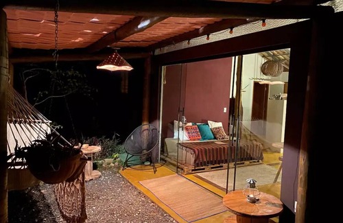Charming chalet with mountain views, Casinha Loquinhas is an accommodation surrounded by the nature of the cerrado. The property is in a gated community a few meters from Cachoeira das Loquinhas, 2.3 km from the city's bus station and 17 km from the Chapada dos Veadeiros National Park. The house has a terrace with panoramic views and free Wi-Fi. The Chalet has a kitchen equipped with refrigerator, stove 4 burners, dishes, cutlery and seasonings.