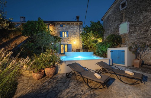 Villa Annette is an authentic Istrian stone house located in the village of Musalez, approx. 3 km from Porec and the beach, with typical Istrian tavern only 2 km away. The house was built at the beginning of the 20th century and was completely renovated in 2013 keeping Istrian style. It is located on its own plot of 300m2 with a beautiful garden, a swimming pool of 12m2, deckchairs, a terrace with seating, a barbecue and private parking.