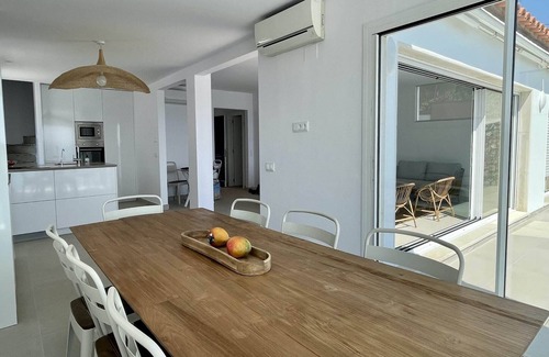 This modern villa offers a stylish and spacious retreat with four bedrooms, accommodating up to eight guests. Tastefully furnished with contemporary décor, it provides a comfortable and inviting atmosphere. Situated along the waterfront, the property boasts stunning views and a private swimming pool, perfect for relaxation. Guests can enjoy air conditioning, Wi-Fi access, and a TV for entertainment. A fenced plot ensures privacy, while the open-air parking within the property adds convenience. A large terrace provides a great space for outdoor lounging, making it ideal for a peaceful getaway. Located in a quiet residential area, the villa is close to a variety of attractions. The nearby nature reserve, Illes Medes, Montgrí i Baix Ter, offers scenic landscapes and outdoor activities. The vibrant town of l’Estartit, just 1 km away, has charming cafés, restaurants, and local markets. The sandy shores of l’Estartit Beach are within 2 km, providing opportunities for sunbathing and water sports. For golf enthusiasts, Empordá Golf Gualta is just a short drive away. The villa features a fully equipped open-plan kitchen with modern appliances, including an induction cooktop, refrigerator, microwave, oven, and freezer. A dishwasher ensures easy cleanup, while kitchen essentials like dishes, cutlery, a coffee machine, and a toaster are provided. A washing machine is available, ensuring a comfortable stay for all guests.