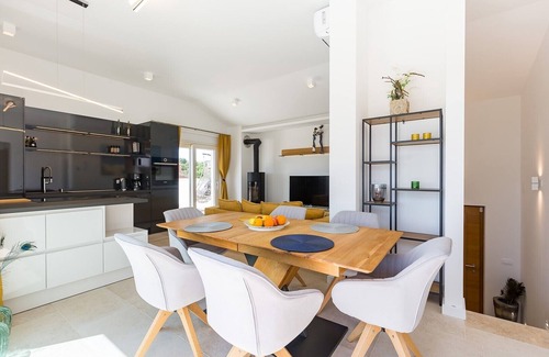 Stylish holiday home with private pool in village Kastelir, near Porec, ideal for 8 guests. After a long day at the beach, cool off in the private 10 x 4 meter big pool.