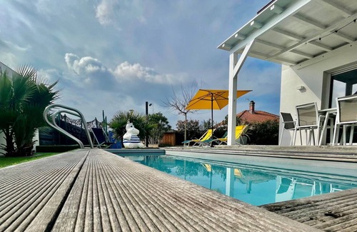 Best-rates for the Biscarrosse villa starts from $359 per night with includes Wellness Facilities, Fireplace/Heating, Laundry, Sports/Activities, Parking, Pool, Oceanfront, Entertainment, Barbecue/Outdoor Cooking, Internet, Kitchen, TV, Balcony/Terrace, Bedding/Linens, View, Private Pool, Ocean View, Accessibility, Security/Safety, Child Friendly with all other facilities. Casai matches every traveler with their perfect accommodation, whether you are traveling with a group, friends, family, or pets.