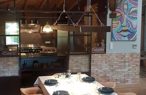 The summer kitchen, open to the outside, includes a plancha, a fridge and a water point.