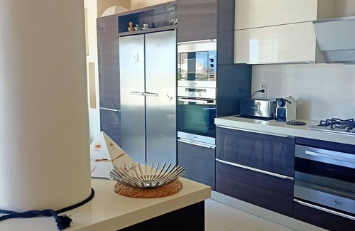 the most modern appliances. An en-suite bedroom (guestroom) with two large single beds is also available at the ground floor level. The outstanding marble staircase with the handmade railing leads to the first floor where two Suite where the master bedroom suite features a king-size bed and a hydromassage tub. There is another suite with two large single beds ,or a queen bed. All the bedrooms are equipped with air conditioning, satellite TVs, wardrobes, screens mosquito nets, and balconies, sitting areas and a smoking area.