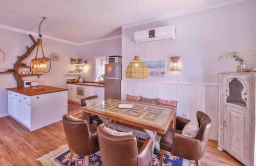 As soon as you enter Villa Lycia, you will have the pleasure of stepping into a warm Mediterranean home. American cuisine in the style of Country,colorful chandeliers, a stone-covered fireplace and a seating corner in front of the window, equipped with natural structures, cushions and throw pillows, dozens of books left for our reading,small decorative objects, white tulles hanging from the windows, and the blueness that fills in are candidates to set a throne in your heart.