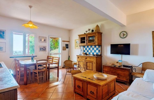 3-room house 120 m2 on 2 levels. Living/sleeping room with 1 double sofabed, dining table and satellite TV. Exit to the garden. Open kitchen (oven, dishwasher, Gas stove, 4 gas rings, kettle, electric coffee machine). Shower/WC. Upper floor: (exterior staircase), 1 open room with 2 beds. Exit to the terrace. 1 room with 1 double bed. Shower/WC. Electric heating. Terrace, patio. Terrace furniture. View of the sea. Facilities: washing machine. Please note: non-smokers only. No internal connecting door between the floors. CITRA:010037-LT-0211