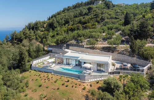 Villa 'Nimbus Villas' with Sea View, Wi-Fi and Air Conditioning is located in Kalamitsi. Villa 'Nimbus Villas' with Sea View, Wi-Fi and Air Conditioning provides accommodation, featuring Pool, Ocean View, Fireplace/Heating, among other amenities. This Villa features Pool, Ocean View, Fireplace/Heating, to make your stay a comfortable one.