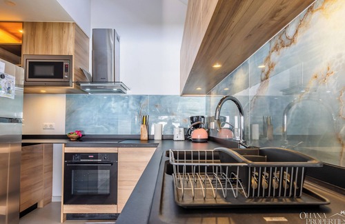 For dining, Villa Vanaki has a fully equipped kitchen with brand new, state of the art appliances. Perfect to cook all of your favorite meals in the comfort of your home away from home. 2 big dining tables are at your disposal, one indoor, one outdoor on the terrace. Also, a barbecue is at your disposal.