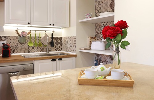 Spacious and bright, spread over two levels, and equipped with every comfort, it comprises 3 bedrooms, 2 bathrooms, a living room, and a fully equipped kitchen. The tastefully furnished rooms offer ergonomic wooden bed bases, memory foam mattresses, 52-inch LED TVs, safes, and bed linen. Each bathroom has a shower cabin, double sinks in one bathroom, a single sink in the other, a toilet, a bidet, a hairdryer, soft terry towels, and complimentary toiletries. Adjacent to the bright living area, the large kitchen area is equipped with gas stoves, an electric oven, a microwave, a refrigerator, a dishwasher, a washing machine, a toaster, a kettle, an espresso machine, and a wide range of pots and dishes. All rooms have air conditioning and free WiFi.