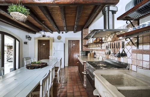 Basement room with kitchen and wood oven, laundry, 1 bathroom-shower, terraces, garden, swimming pool, solarium, dressing room with bathroom-shower.