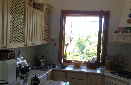 The Villa, with a beautiful view on the island of Caprera, is located within an area of villas in a very quiet residential environment and a few steps away from the beach of Cala Grande, inside the Piras Village. A large living room with open kitchen overlooking the sea view terrace where you can eat while enjoying the landscape; two double bedrooms and two bathrooms, one of which is en suite, complete the main apartment. The tavern below has a laundry room for guests to use. A large and well-kept garden surrounds the house; here you find a table with umbrella and a solarium. Two parking spaces are available for guests.