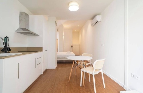 You’ll also find a dining table with chairs and a clothes rack to keep things tidy. The clean, minimal design works well for couples, solo travelers or weekend getaways. Surrounded by cafés, local eateries and traditional markets, it’s the ideal base to enjoy an authentic Valencian experience.