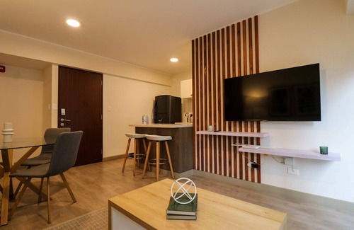 Enjoy the comfortable features of a hotel quality apartment in the heart of Miraflores; stay walking distance away from iconic sights like Kennedy Park, San Ramón Food Market, Lovers Park, Larcomar and the Malecon.