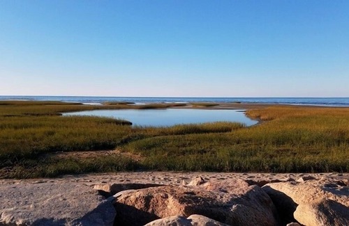 Paines Creek Beach in Brewster is one of those Cape Cod gems that is a must visit on the bayside. It is most loved by families who want a quiet spot to relax and smaller kids who love to play in the tidal pools or search for fiddler and horseshoe crabs. Plan to be there at high tide, or you may have to walk a mile to get from the beach to the water's edge.
