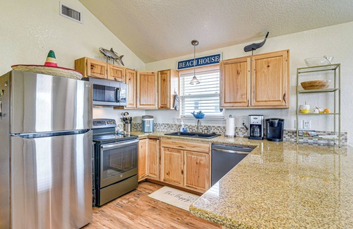 Walk to Gulf: Surfside Beach Home w/Deck is located in Surfside Beach. Walk to Gulf: Surfside Beach Home w/Deck provides accommodation, featuring Bedding/Linens, Kitchen, Security/Safety, among other amenities. This House features Bedding/Linens, Kitchen, Security/Safety, to make your stay a comfortable one.
