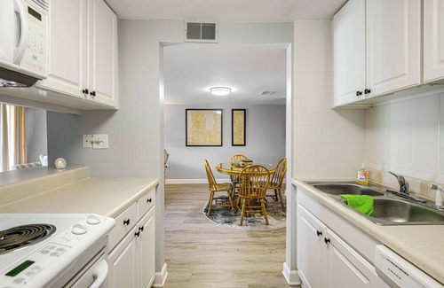 1 Bedroom Condo with Balcony, Bedding and Kitchen
