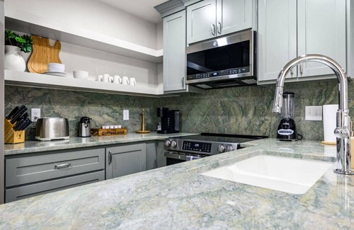 • Fully equipped kitchen with stove, oven, refrigerator, microwave, and dishwasher