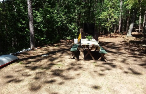 A cozy duplex cottage shares a common wall with other cottage nothing else it comes with 1 bedroom comes with two double beds and a large spacious kitchen and no livingroom and full size bathroom with beach a dock with great view a built in BBQ fire pit and picnic table