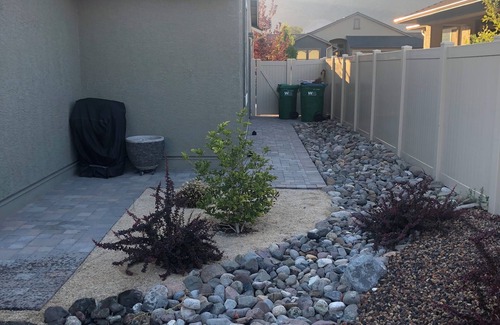 Located in a quiet, newly developed community in Southern Reno! Enjoy what this 2-bedroom house has to offer including 2 queen beds, 2.5 bathrooms with shower and bathtub, AC, heating, a washing machine, a fitness room with Peloton bike, WiFi, and more. Includes a ring doorbell for security. Guests do not have access to garage. Enjoy the charming backyard with fire pit and barbecue. We're happy to assist with any questions while you stay at our house.