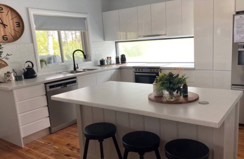 This gorgeous home, with it's just totally modern renovations in Pleasant View Parade, is set in the quiet hamlet of Bundabah on the peaceful shores of Port Stephens looking across the sparkling waters of The Cove. With a ten minute drive to Tea Gardens and fifteen minutes to Hawks Nest, you will find all forms of waterways including The Myall River, Bennett's Beach and Jimmy's Beach. The location is perfect for a relaxing break away from the hustle and bustle of city life (no parties here) and traffic. 29 Pleasant View is a great place to escape to with the older family, bring the kayak as there is direct access to the water, no fences or gates to lock you in (vigilance with small children essential!). And the boat ramp is only100mtrs down the road - that means easy access to all those waterways - 'let's go fishing!!' This is nature calling at it's best.