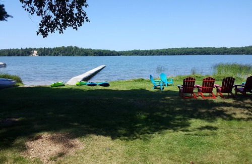 1958 cabin overlooking a private beach on sandy Lower Herring Lake, gradual drop-off, private dock, 2 new kayaks, 2 new stand-up paddleboards, new lifejackets, new 42" HD TV, access by boat miles of beautiful, private beach on Lake Michigan, pristine, private, and undeveloped beach for miles, with dunes blending into forests. We only rent by the week in July and August.