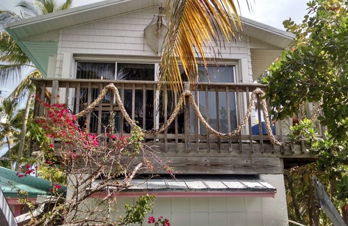 The property is on the Bay, with a balcony in the palm trees and a large back porch on the water. Includes a ComPac sailboat, use of kayaks, bicycles and BBQ grill.