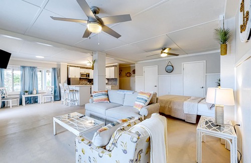 Leave your worries behind and unwind at this spacious, sun-soaked vacation home. Perfect for a group getaway, this Perdido Key paradise comes divided into four separate dwellings, each furnished with standalone living essentials for ultimate flexibility and family living. Along with waterfront views and a convenient location just steps from the beach, you'll also enjoy access to a variety of community amenities during your stay including tennis and pickleball courts and a shared boat dock. When you're not indulging in on-site leisure, you can spend your days exploring the Johnson Beach National Seashore or Pensacola area attractions like the National Naval Aviation Museum, the Seville Historic District, and Uncle Sandy's Macaw Bird Park. Flora-Bama is only three miles away.
