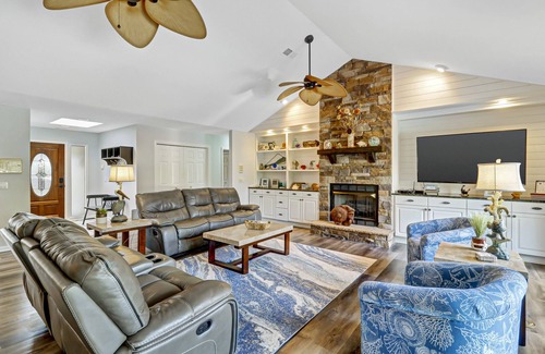 There are not many places like this home that are less then a 10 minute walk to the beach that have a pool, and on a lake. We have games and activities for all the ages and everything you need to make this a memorable vacation. We will provide coolers, beach chairs, boogie boards and more. We have a sun room overlooking the pool with a wet bar and an arcade game with 60 of the old school games (Ms. Pac Man, Frogger, Battleship among others). This home has a primary suite with a king bed, another bedroom with two queen beds and one with a queen bed and a trundle. This home has a total of five TV's with a 70' tv in the living room and 50' TV in the master suite. Our kitchen has commercial grade appliances.
