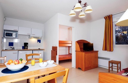 The residence Mille Soleils, Pyrenees, France, comprises of 103 apartments spread over 5 buildings situated in a residential district. It is 500m from the centre of Font Romeu ski resort, Pyrenees, France. A mini bus is available at the foot of the residence (one bus every hour in high season) to get to the nearby cable car (700m away). Surface area : about 37 m². Orientation : East, West. Living room with pull-out sofa. Bedroom with double bed (140*190). Cabin with 2 bunk beds (80*190). Kitchenette with kettle, coffee machine, hood, dishwasher, microwave or oven, 2 vitroceramics cooking rings, fridge. Bathroom. Separated WC. Balcony. The beds in elevation are not suitable for children under 6 years.